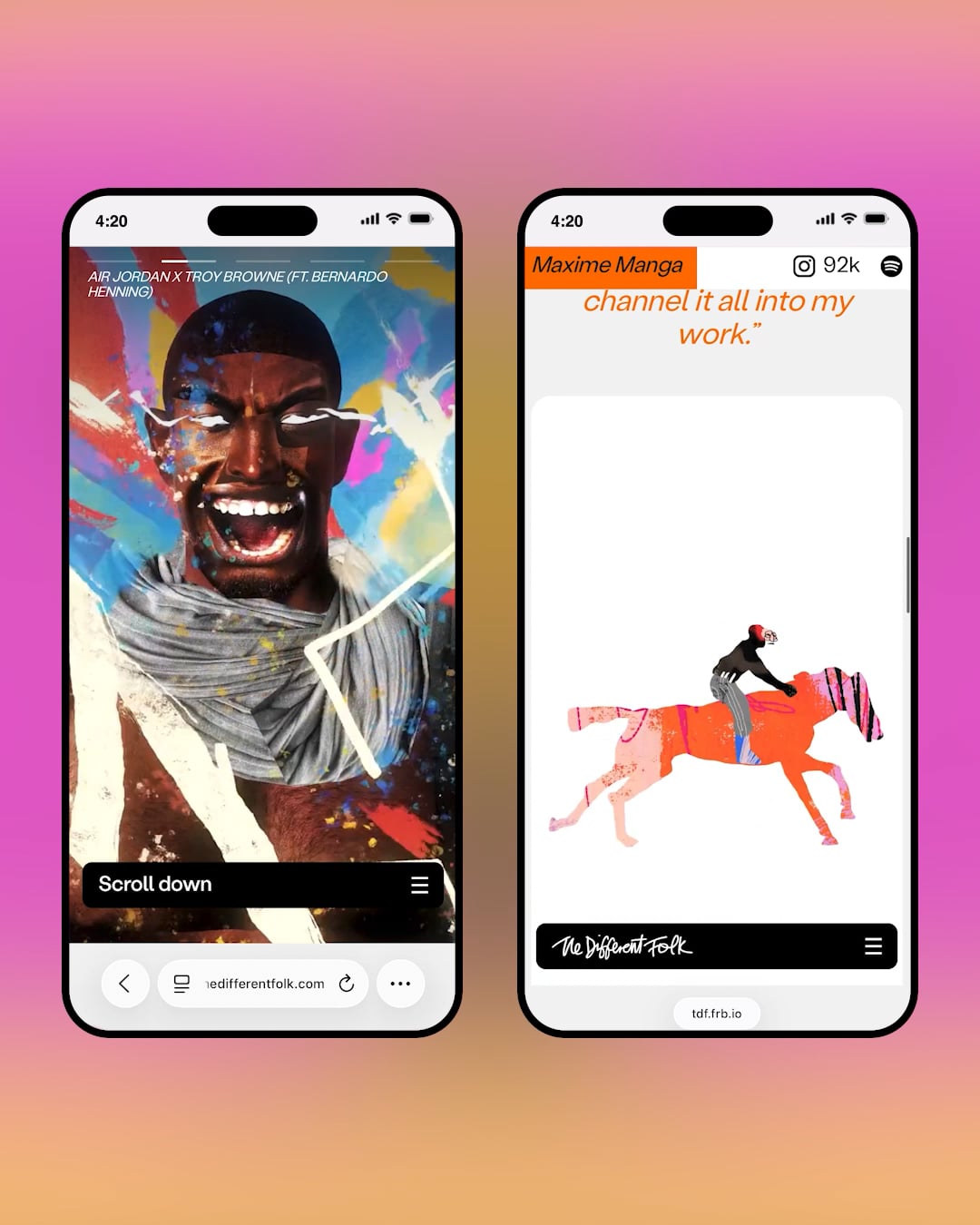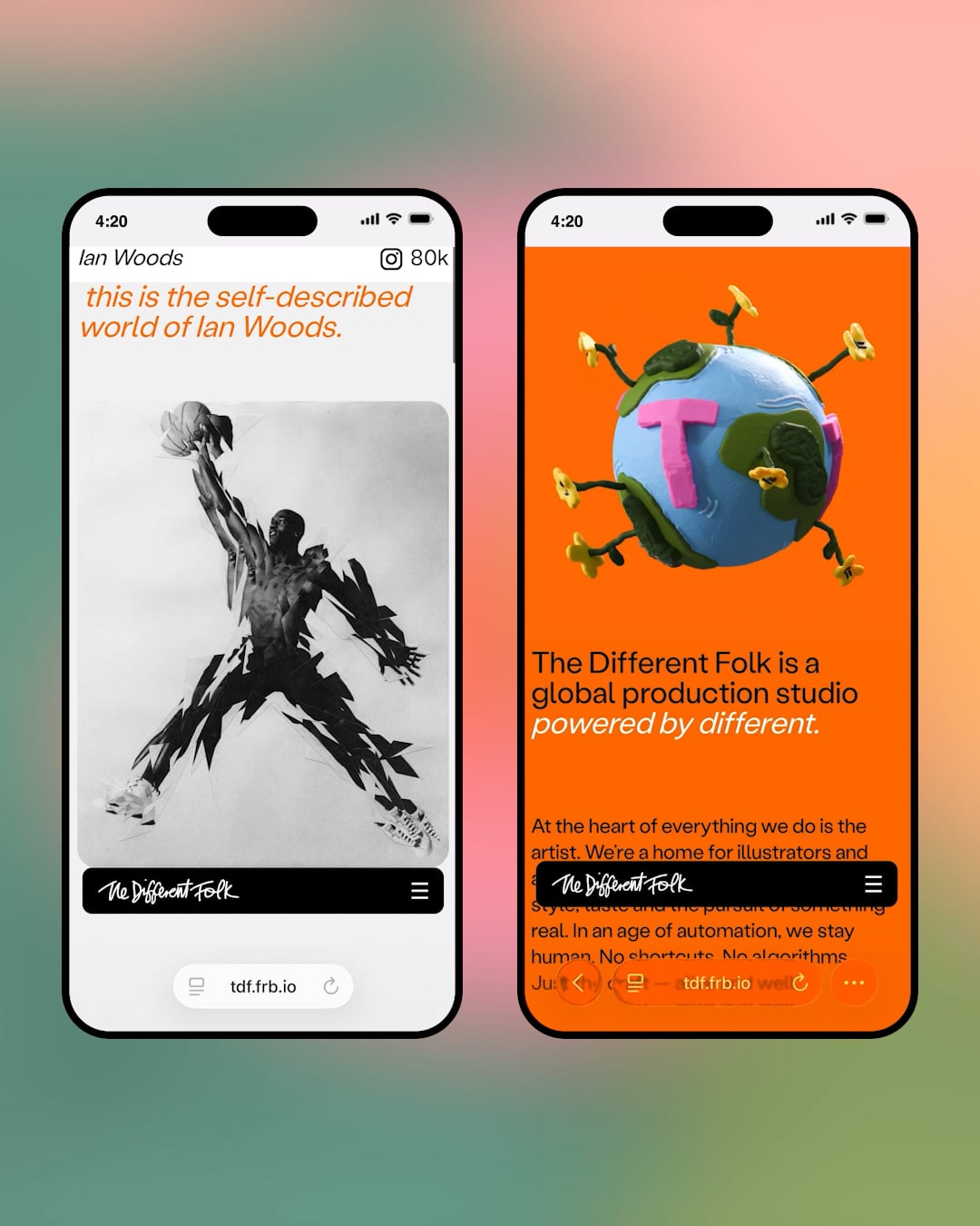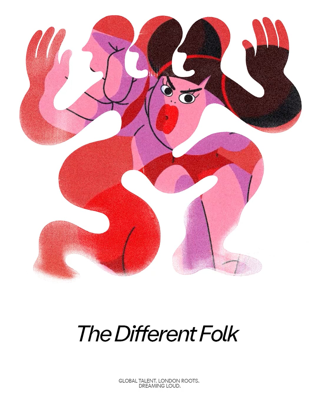 Branding and website for The Different Folk. A London-based production company and artist representation agency, The Different Folk is home to a global collective of illustrators and animators. We developed a new brand identity and website that reflect TDF’s mission: to champion creative talent and place artists at the center of campaign creation. At the core of the process was collaboration. Twenty artists represented by TDF reimagined the logotype, turning the identity into something living, dynamic, and collective. The result is a brand that balances bold expression with subtle sophistication — a flexible system that adapts to context, frames the work of artists, and amplifies their voices rather than competing with them. Together with a website that serves as both showcase and hub, the identity captures the spirit of a studio powered by difference.